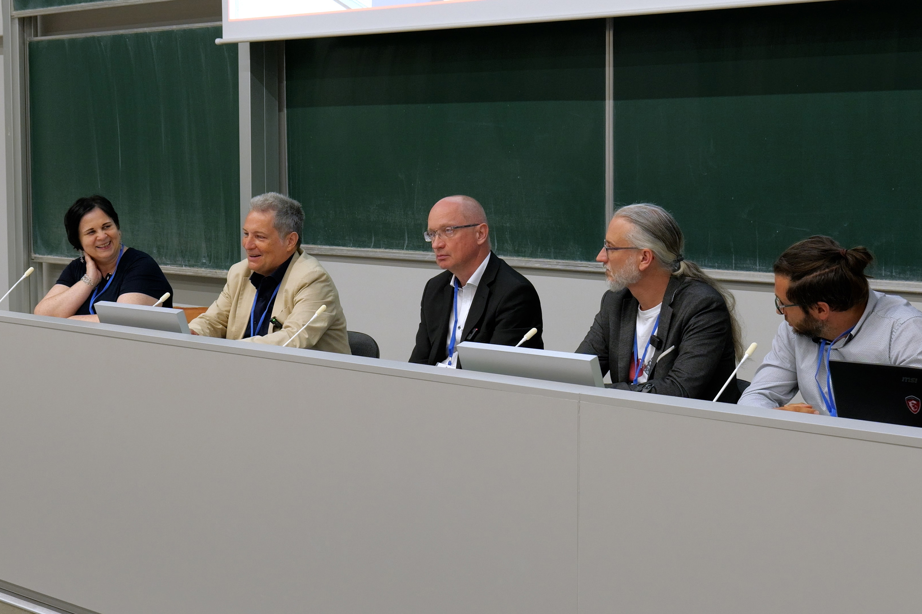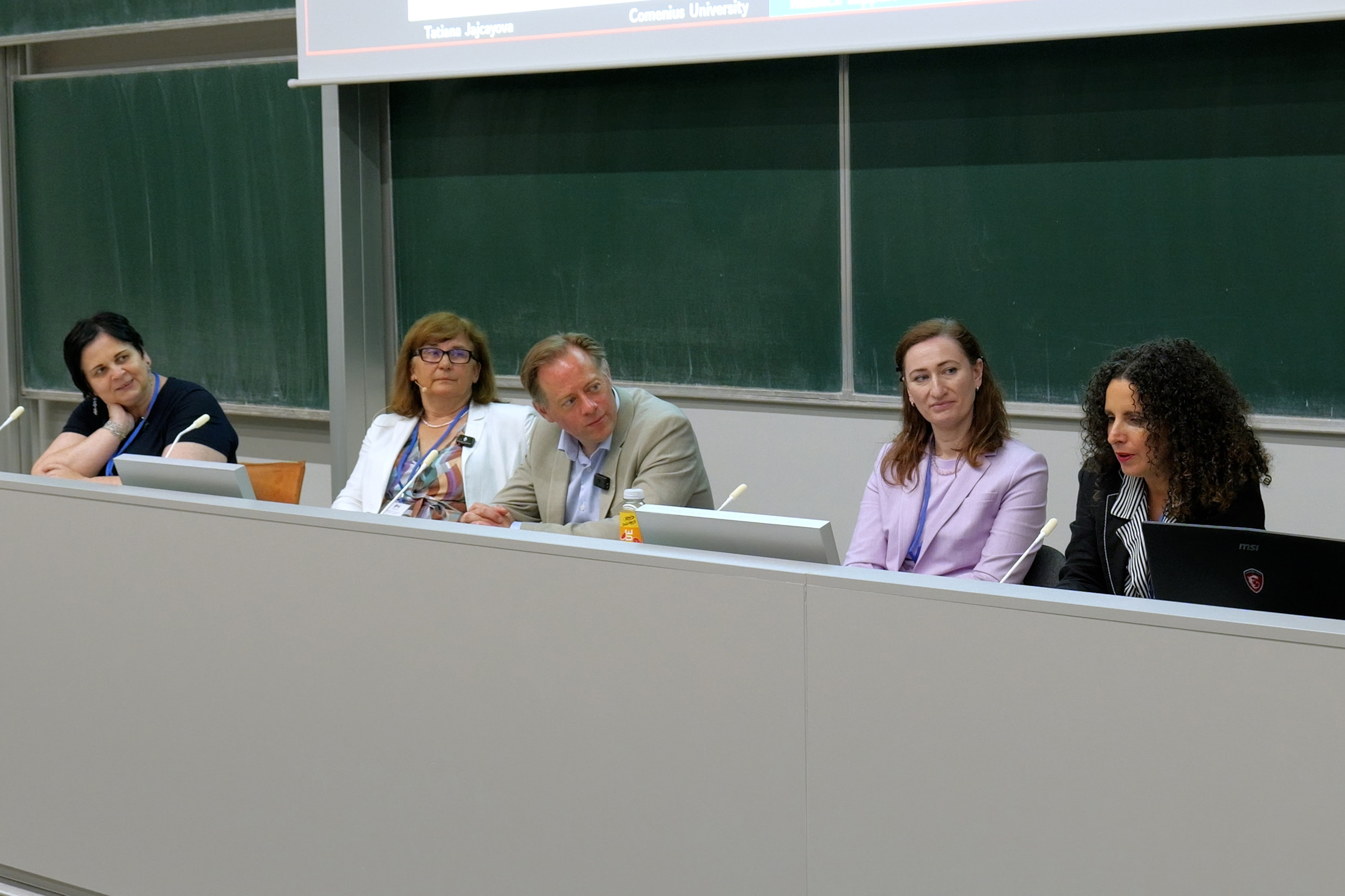 Later on Fredrik Heintz (Linköping University) delivered a thought-provoking lecture on Towards Trustworthy and Factual Large Language Models, underscoring the growing importance of reliability and transparency in AI systems. This was followed by a panel discussion on research support and organizational development at higher education institutions, led by Daniela Olejárová, alongside international experts such as Tatiana Jajcayová (UKBA), Fredrik Heintz ( Linköping University), Alessandra Sciutti (IIT), Zuzana Lisoňová (UKBA) and Igor Farkaš (UKBA).